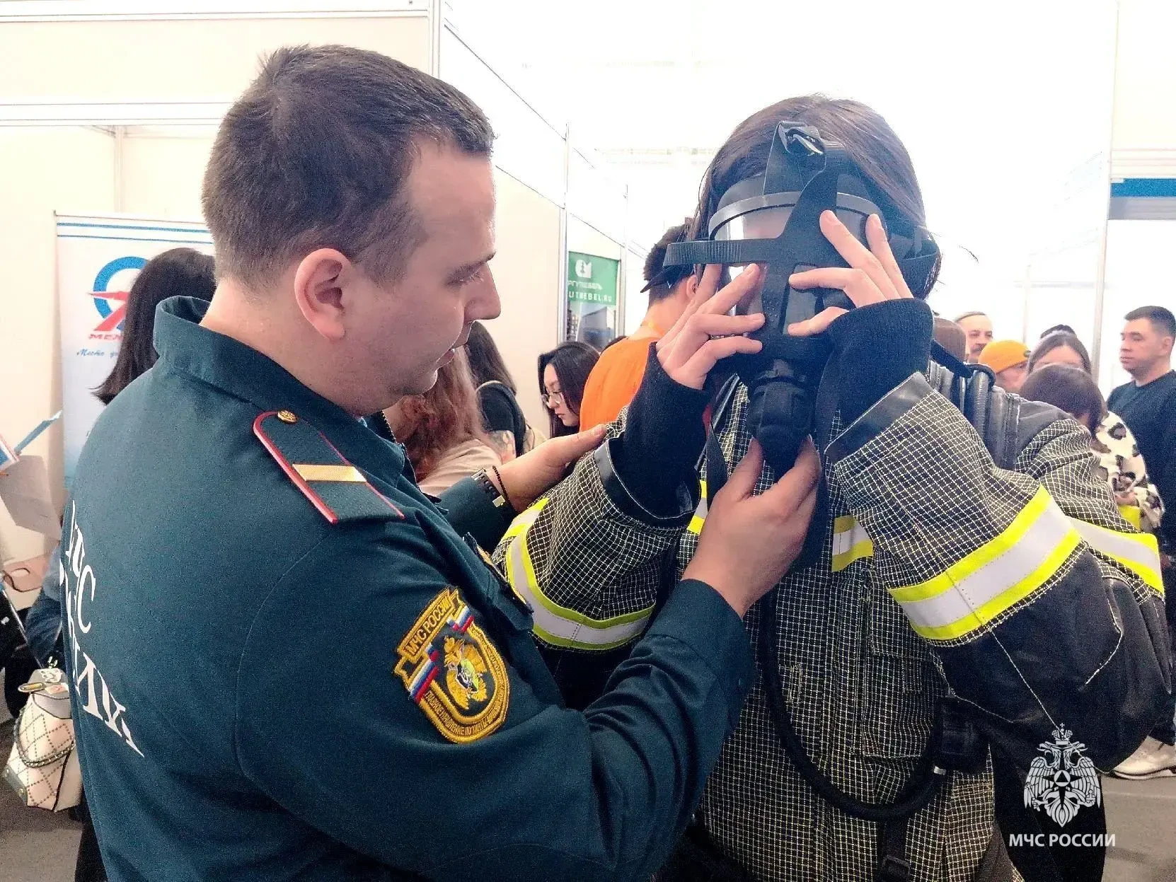 Интерактивная часть мероприятия вызвала живой интерес у всех гостей. И взрослые, и дети с удовольствием пробовали дышать через кислородную маску и примеряли на себя боевую одежду пожарного.