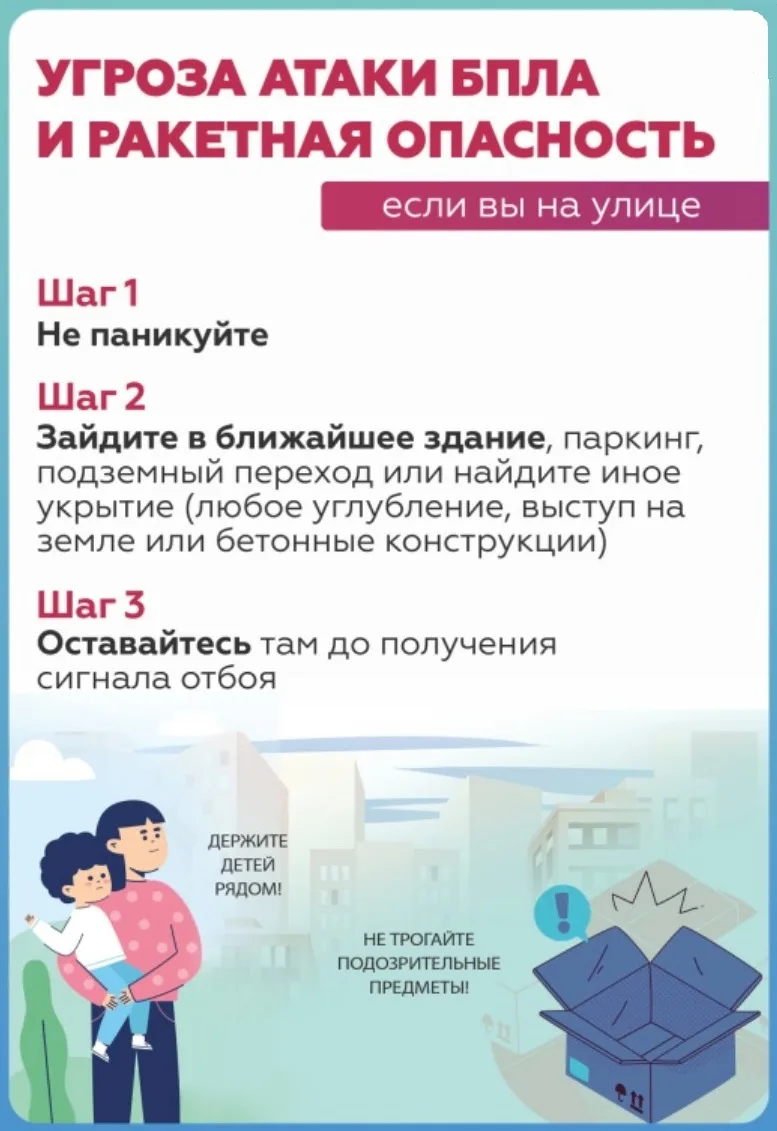 При обнаружении беспилотного летательного аппарата, а также при угрозе ракетной опасности важно сохранять спокойствие и знать, как правильно действовать, чтобы обеспечить безопасность себе и своим близким.