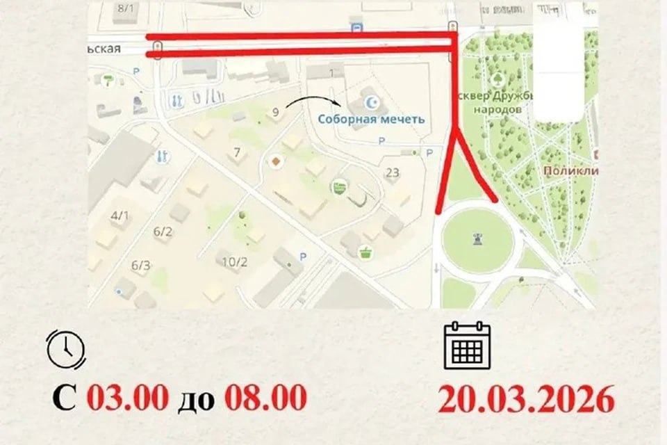 В Сургуте утром 20 марта перекроют несколько улиц из-за празднования Ураза-байрама