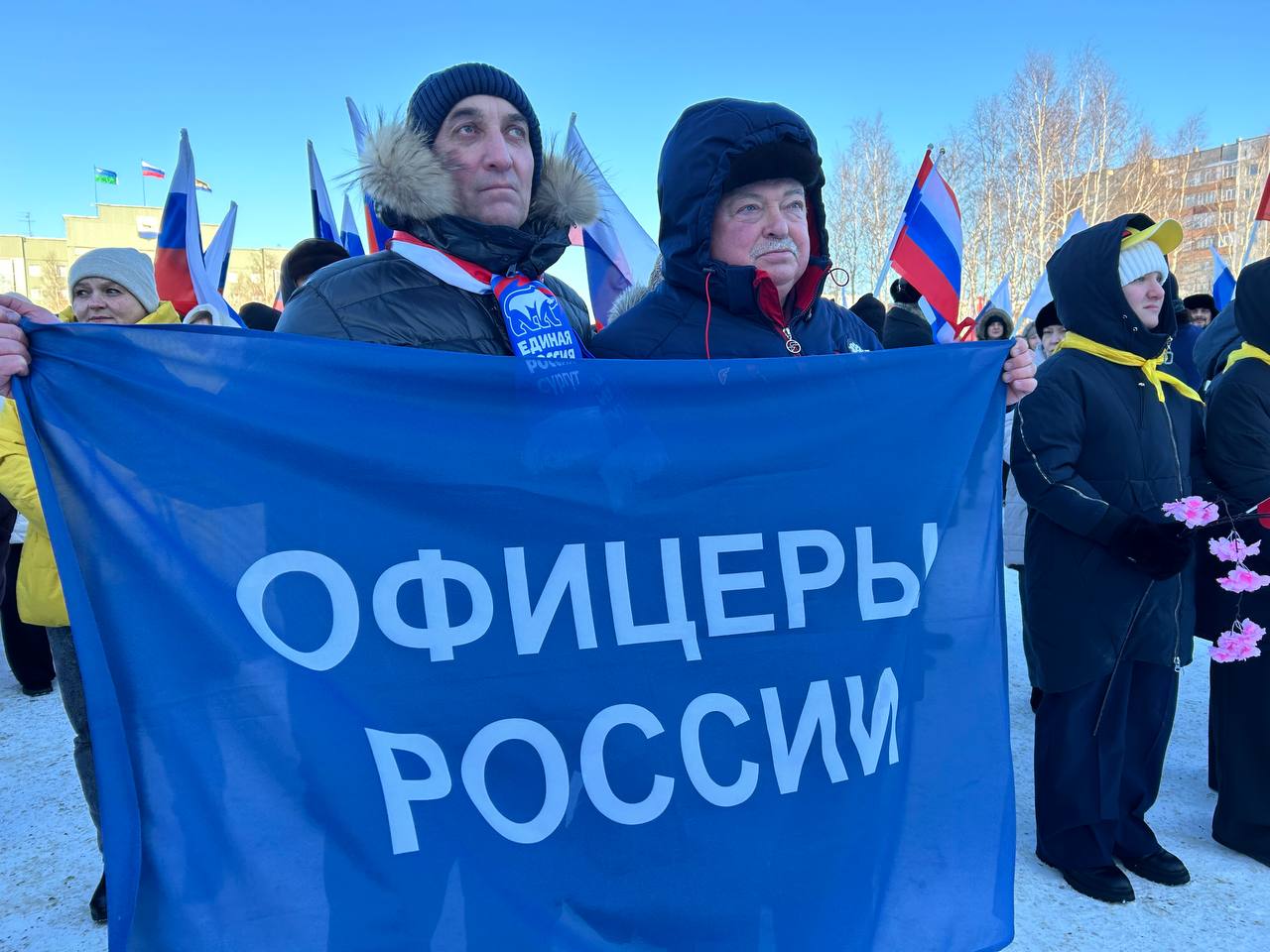 В митинге приняли участие депутаты Думы города Алексей Кучин, Виктор Рябчиков и Эмилия Трапезникова, которая выступила с приветственным словом и отметила, что Крым воссоединился с Россией благодаря сильному духу крымчан.