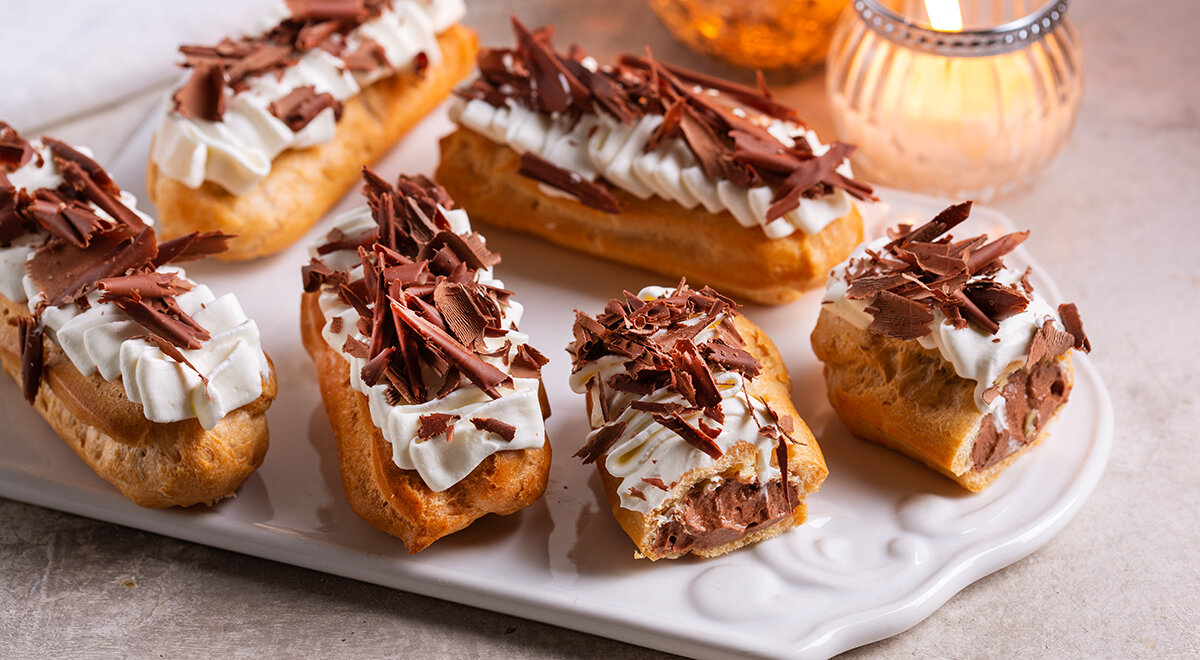 Шоколадные эклеры не просто лакомство, а настоящая кулинарная находка, способная украсить любой чайный стол. Эти воздушные пирожные порадуют даже самых взыскательных гурманов. Для достижения наилучшего результата стоит обратить внимание на выбор ингредиентов: масло, шоколад, сливки и яйца должны быть только высшего качества. Четкое соблюдение рецепта тоже не помешает!