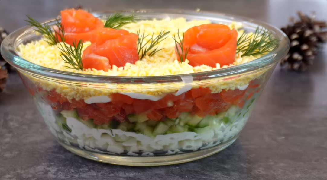 Один из самых востребованных рецептов в мире легких закусок — это салат «Принцесса». В его основе лишь три ингредиента: слабосоленая форель, свежий огурец и яйца. Это идеальное сочетание нежной рыбы, хрустящей зелени и яичных белков создает удивительно освежающий вкус. Подавайте его как в общей тарелке, так и в стильных креманках или стаканах, чтобы удивить гостей.
