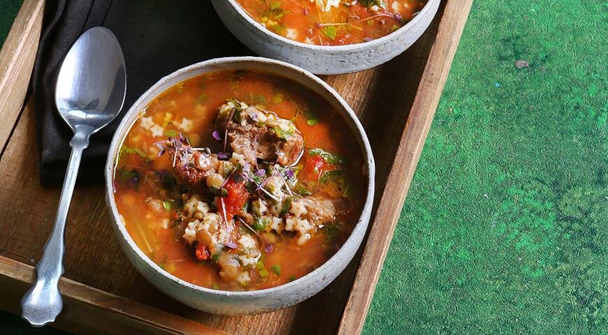 Приготовление восхитительного супа начинается с насыщенного бульона, получаемого из говяжьей грудинки на косточке. Этот бульон служит основой для множества супов и в нашем рецепте острота придается благодаря красному перцу, а чечевица добавляет тепла и сытости.