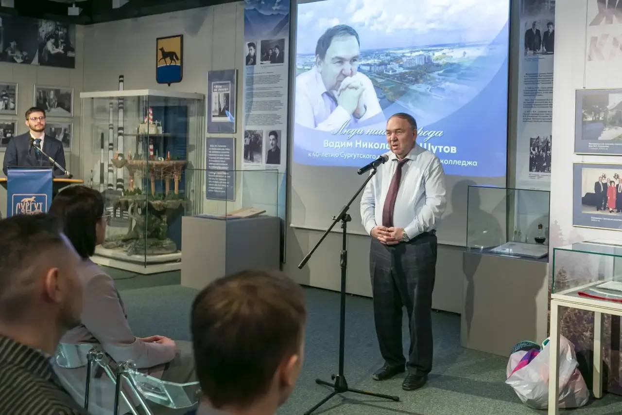 В Сургутском краеведческом музее в рамках проекта «Люди нашего города» прошла встреча, посвящённая 40-летию Сургутского профессионального колледжа. Героем встречи стал Вадим Шутов, директор Сургутского политехнического колледжа.