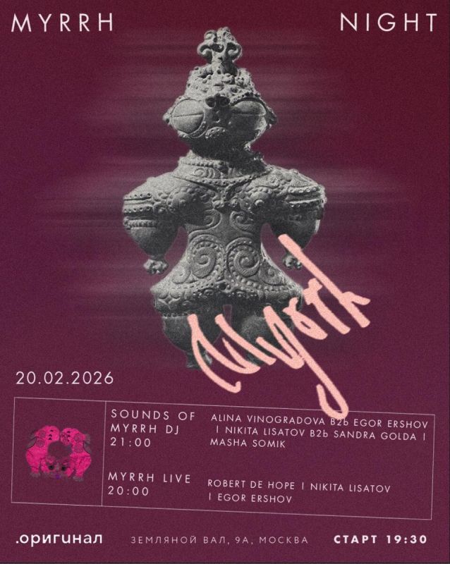 - 20 февраля, пятница: Вечер MYRRH NIGHT – погружение в мир живой музыки и авангардной электроники, который пройдёт впервые.