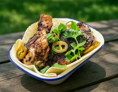 Приготовленный цыпленок по-гавайски стоит подавать с лепешками и острым перцем халапеньо. Это придаст блюду дополнительную остроту и яркость, а также создаст прекрасное сочетание текстур и вкусов.