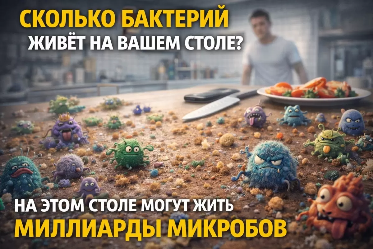 Каждый раз, когда на стол помещаются продукты, пакеты из магазинов, телефон или ключи, на его поверхность попадают микроорганизмы. Бактерии проникают с воздуха, с одежды, с еды и даже с нашей кожи.