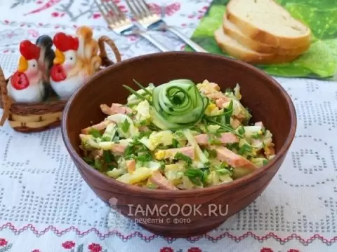 Этот сытный салат подарит гармонию вкусов благодаря сочетанию картофеля, колбасы и свежих овощей. В течение всего лишь 25 минут можно создать аппетитное и лёгкое блюдо с калорийностью всего 149 кКал.