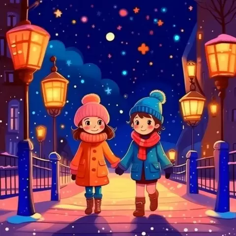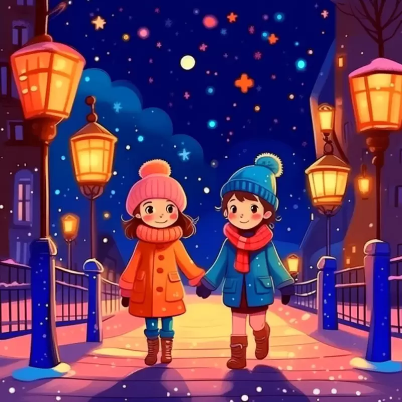 И тут произошло нечто необъяснимое. Они взялись за руки и, словно попав в вихрь метели, медленно приземлились рядом с ним. Два странных существа представились: девочка — Снежка и мальчик — Ледок. Они утверждали, что являются помощниками Деда Мороза.