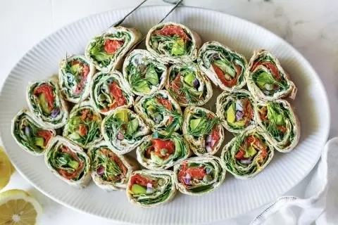 Эти рулетики из лаваша представляют собой отличную альтернативу традиционным бутербродам. Их удобно есть, не отвлекаясь от основной еды, например, шашлыков. Просто заверните выбранные ингредиенты в лаваш и нарежьте на порции.