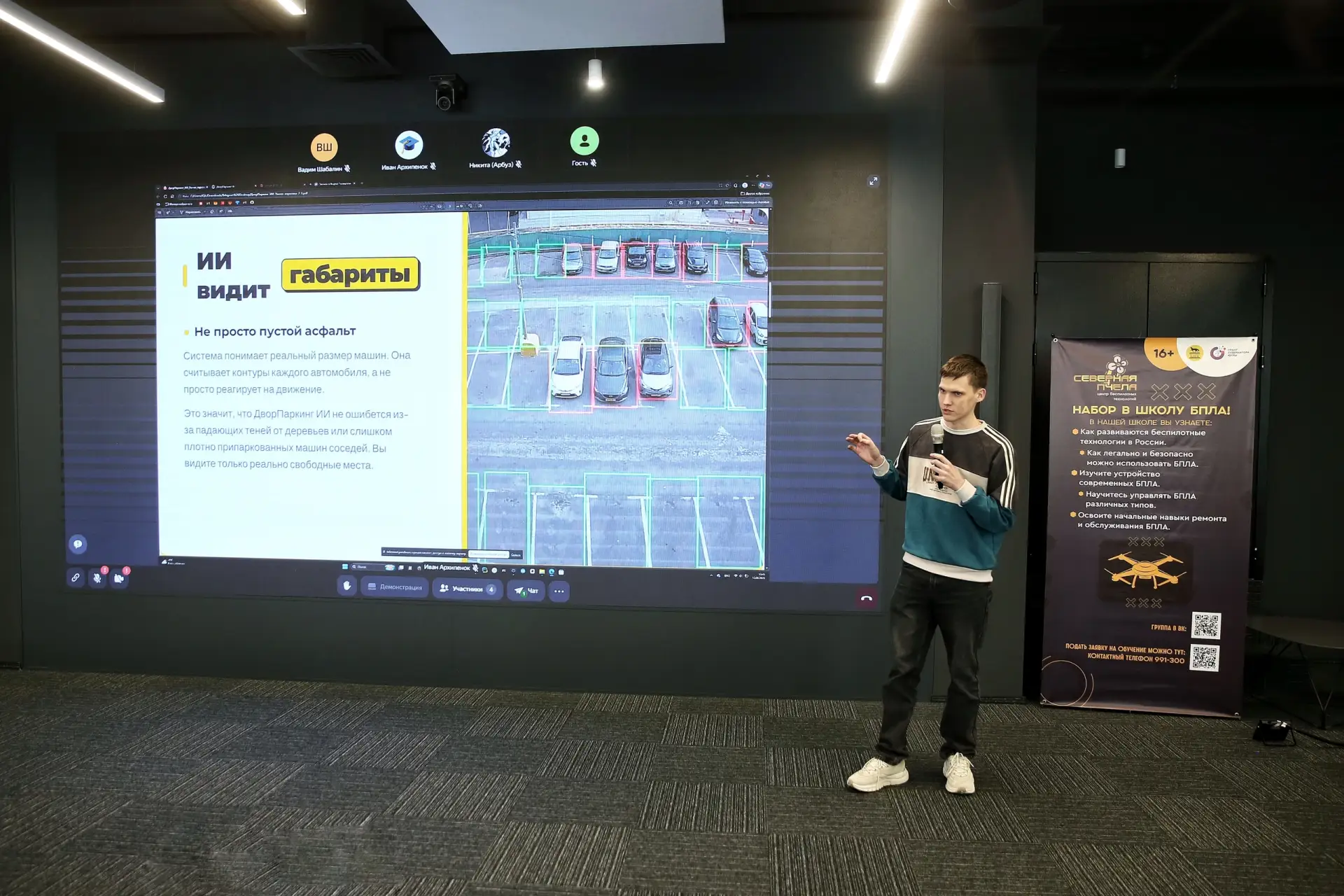 В первый день ребята разбирали задачи по ИИ и беспилотным системам, учились работать в команде. На втором этапе создавали и защищали проекты.