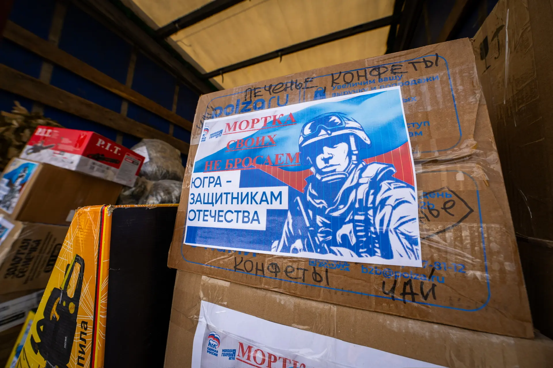 Это уже третья фура с грузом, которую собрали члены партии «Единая Россия». К ним присоединились жители муниципалитетов западной части Югры. Внутри — квадроциклы, экипировка, одежда, оборудование, приборы связи и навигации, бензопилы, аптечки и инструменты.