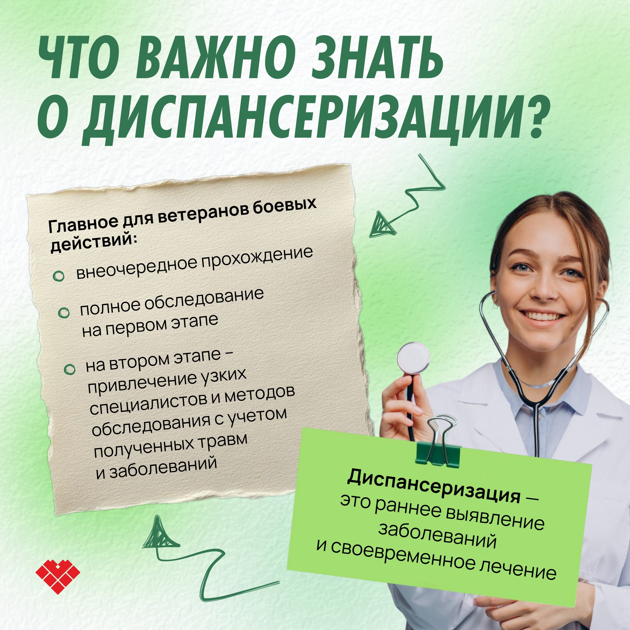 В рамках диспансеризации для ветеранов предусмотрен особый порядок: внеочередное полное обследование на первом этапе с обязательным учетом боевых травм и заболеваний.