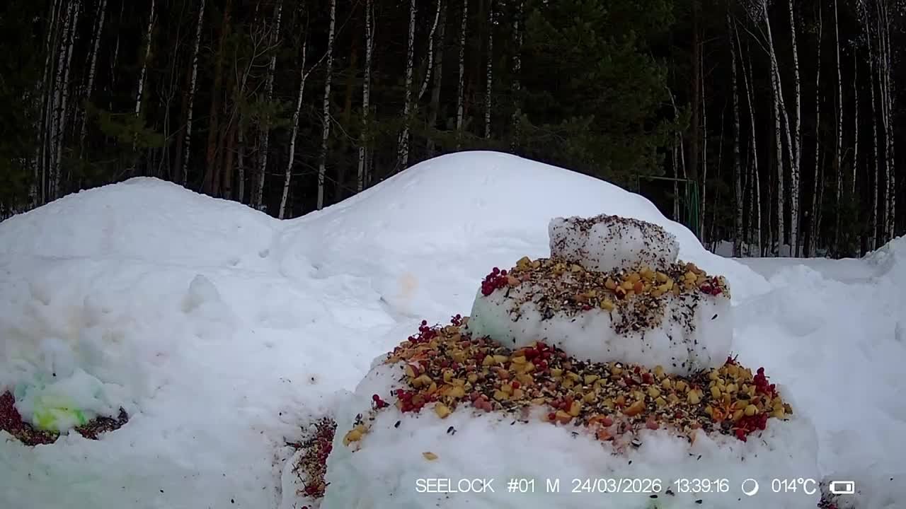 В природном парка «Сибирские увалы» волонтеры оставили угощения для птиц и зверей. Кто-то прилетел покушать, а белки проверяли не обманывают ли.