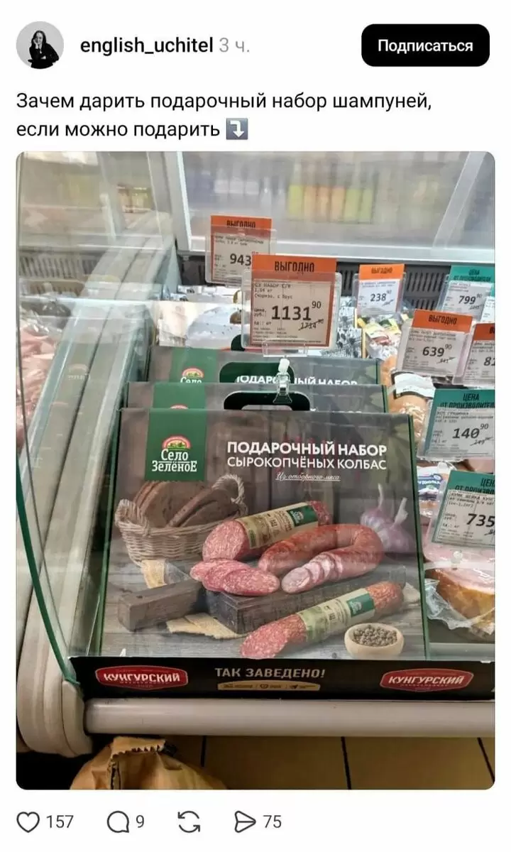 Компания «Село Зелёное» готова порадовать любителей гастрономии уникальным предложением. В преддверии праздничного сезона на рынок вышел набор сырокопченых колбас, оформленный в стильную подарочную упаковку. Разработанный с учетом всех традиций и предпочтений гурманов, комплект уже доступен в магазинах по цене 1100 рублей.