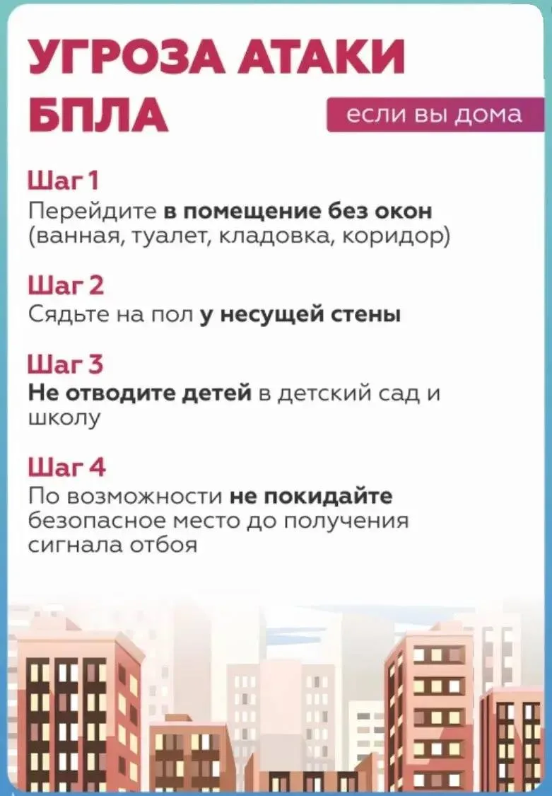 Основные рекомендации приведены в карточках. Как отмечают в мэрии, для защиты существуют специальные «заглубленные помещения,» которые приспособлены под укрытия. Где они расположены, можно узнать по ссылке.