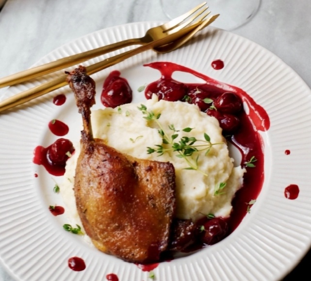 Приготовленная утка с клюквенным соусом — это кулинарный опыт, который оставляет незабываемые впечатления, сочетая богатство утиного вкуса с освежающей кислинкой и сладостью клюквы.